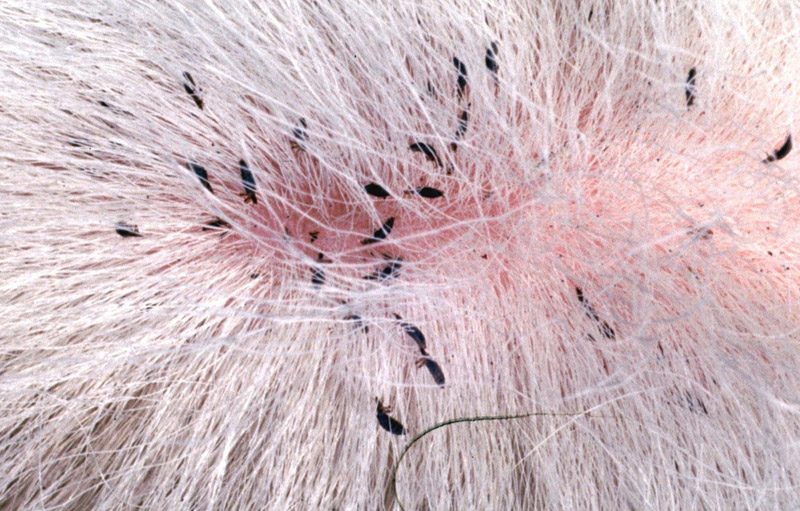 A two-handed inspection should be done by parting the hair on the top line, withers and face. This will determine if the animal is infested with lice and, if so, to what extent. Lice numbers between 1-5 per square inch represent a low population, 6-10 per square inch represent a moderate population, and more than 10 lice per square inch is considered a heavy population.