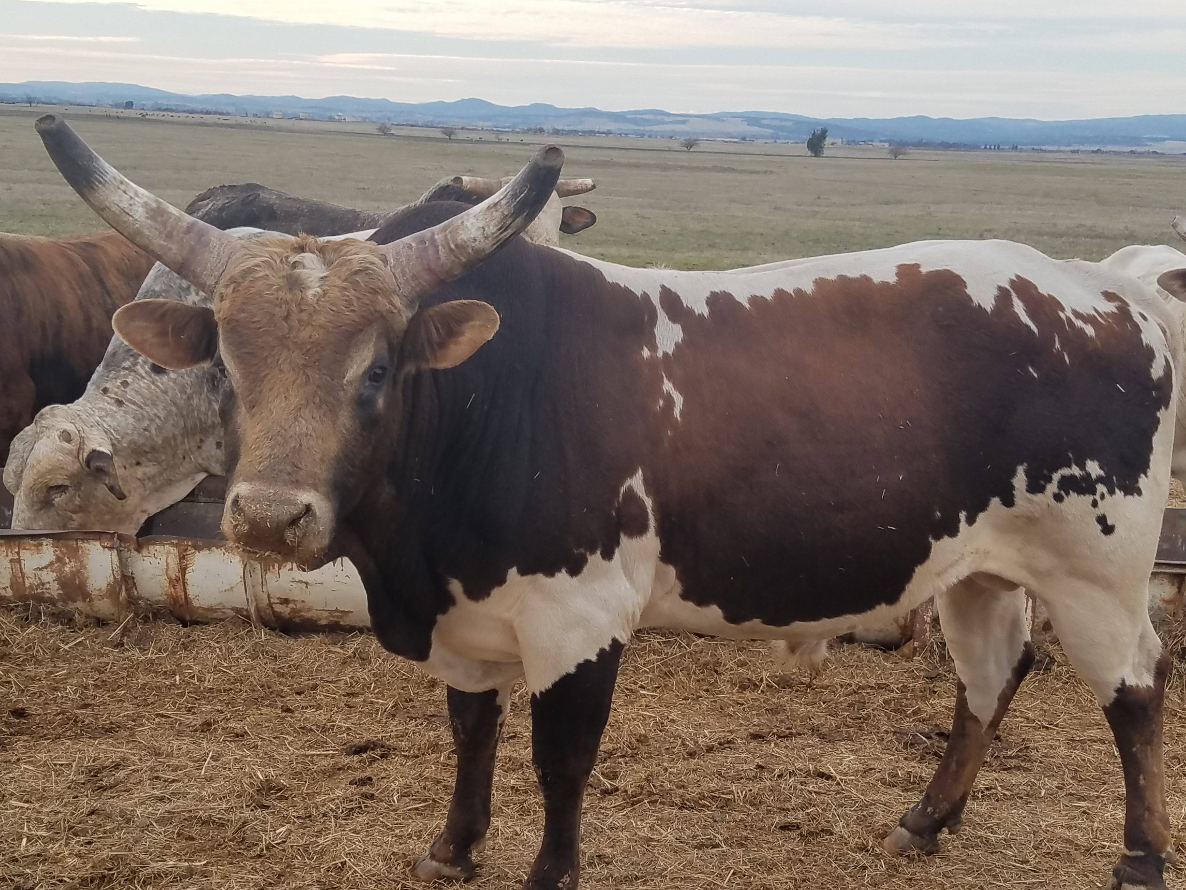 The Coffeys bred Granny to the bull #61 Hooter who was brought in to outcross the bloodlines. Hooter had a monster set of horns which he passed off to Granny’s calf, Skat Kat.